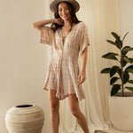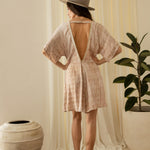 Short Jumpsuit in Aquarelle Batik. Available in Brown and Grey.